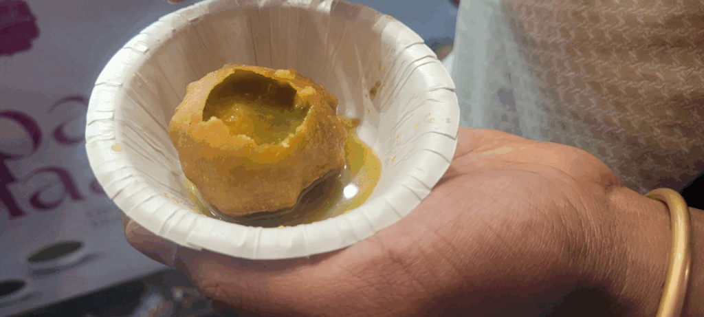 அடுத்து பானிபூரி. வரிசையாக நின்று சின்ன தட்டில் ஒன்றொன்றாக வாங்கி வாயில் போட்டுச் சாப்பிட்டுக்கொண்டே இருந்தார்கள். அதிலும் உருளைக்கிழங்கு திணித்து வண்ண நீரூற்றிக் கொடுத்தார்கள். ஒன்றைச் சாப்பிட்டுவிட்டு வேண்டாமென்றேன். சரண் முகம் பாவமாகியது. “கடைசி பானிபூரி ஸ்பெஷலா நிறைய உள்ளே வச்சுக்கொடுப்பாங்க அதைச் சாப்பிடுறியா?” என்றான். மறுத்தேன். “தஹிபூரியாவது சாப்பிடு” என்று வாங்கிக் கொடுத்தான். அதிலும் என்னென்னவோ கலந்து காரசாரமாகக் கொடுத்தார்கள். எனக்குப் பிடிக்கவில்லை. “வீட்டுக்குப் போலாம்” என்றேன்.